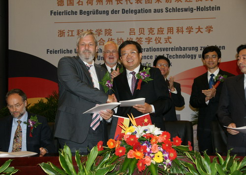 蒋胜祥说,近年来,浙江教育的国际化意识不断强化,高等教育国际交流与合作日趋活跃。1986年4月,浙江省与德国石荷州结为友好省州,双方在各领域已开展了广泛的交流与合作。他希望,通过此次访问,双方能够在高等教育领域达成实质性的合作意向,并为将来两省州在校际交流、师生互访、科研合作等方面搭建良好平台。