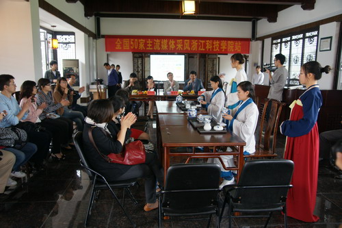在米乐官网30周年校庆活动日前夕,9月30日上午,参加“诗意•奋进•融合——全国主流媒体2010年浙江高校行”的近40家全国主流媒体记者来校采访。校党委书记徐志平、校党委副书记陈根芳出席媒体见面会。党委宣传部、学工部、国际处、科技处、团委和经管学院、建工学院、信息学院等相关单位和项目负责人参加见面会。