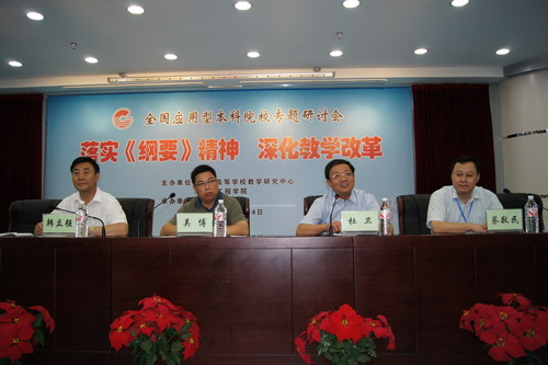 全国高校教学研究会应用型本科院校专门委员会主任陈小虎结合《国家中长期教育改革和发展规划纲要》(2010—2020年),作了题为“对应用型本科教育再思考”的报告。米乐官网校长杜卫主持大会分组讨论,并在闭幕式上发言。副校长赵东福作了关于米乐官网高素质应用型人才培养模式改革与创新的大会发言。参加大会交流发言的还有南京工程学院、黑龙江工程学院、合肥学院等7所应用型本科院校。
