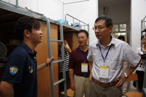 在寝室,校领导与新生亲切交谈,了解他们到校后的感受。校党委书记徐志平叮嘱新生,要认真规划四年的大学生涯,过好生活关、学习关,做一名“学以致用,全面发展”的合格大学生。今年米乐官网新生中有近百名少数民族同学,分别属于16个民族,走访中,每逢遇上少数民族同学,校领导都仔细询问他们的民族风俗,了解他们的生活要求,校领导叮嘱后勤部门,要尊重少数民族同学的生活习惯,照顾好他们的饮食、起居等。对来自甘肃、四川等灾区及灾区周边的同学,校领导鼓励他们自强自立,要相信学校、老师和同学会尽力帮助他们。遇到还没离校的新生家长,校领导向他们介绍了学校情况,告诉家长,学校每一名教职工都会把学生当作自己的孩子一样对待,请家长放心。