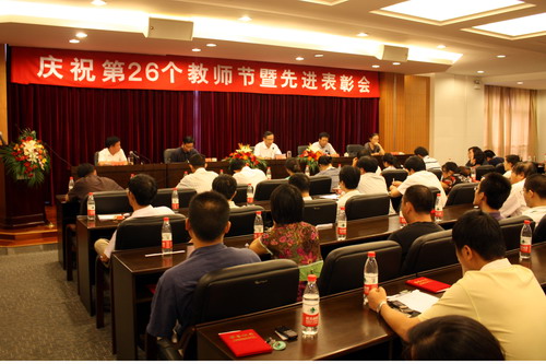 9月10日,学校隆重召开庆祝第26个教师节暨先进表彰会。校党委书记徐志平、副书记陈根芳、副校长赵东福、纪委书记鲁凤、正院级巡视员胡浙平出席会议。会议由胡浙平主持。
