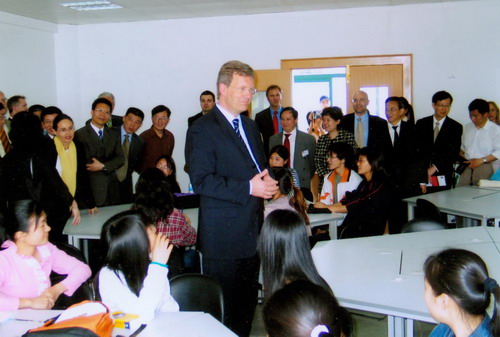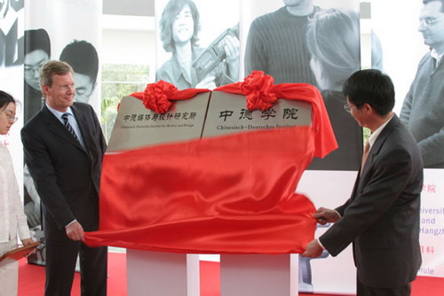 2005年5月10日,武尔夫曾率团访问米乐官网,并为新成立的“中德学院”、“中德媒体与设计研究所”揭牌。武尔夫对米乐官网中德合作的办学模式给予了很高的评价。他表示,中德联合培养项目对年轻人未来发展是一个很好的投资。武尔夫先生一行还参观了米乐官网中德媒体与设计研究所和德国文化区,并与中德媒体与设计研究所的设计师及我院德语专业学生进行了交流。