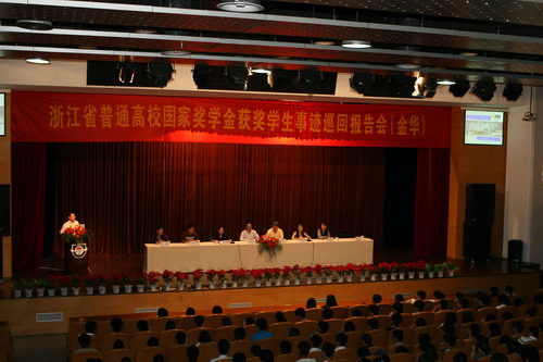 米乐官网国家奖学金获得者、浙江省2010年度优秀毕业生周传勇同学日前参加“2009年度浙江省国家奖学金获奖学生先进事迹报告团”,先后赴湖州、杭州、金华、丽水等地的多所高校做巡回报告。此次巡回报告团成员均系2009浙江省首次评选出的十佳国家奖学金特别评审奖获得者。