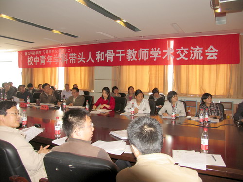 4月30日,学校举行习得学术论坛第十二期--校中青年学科带头人和骨干教师学术交流会,校长杜卫出席会议并讲话。会议由校长助理郑友取主持。 2006年、2008年入选的校中青年学科带头人和骨干教师就近年来取得的教学科研成果、进修情况、研究方向和领域进行了交流。