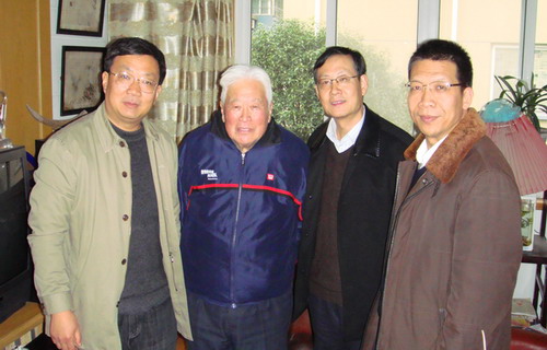 图为王启东先生(左二)与学校领导在一起