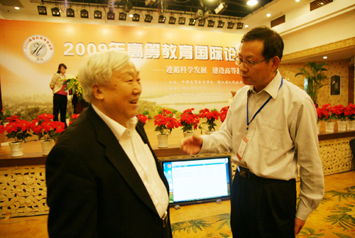 10月26至27日,由中国高等教育学会和浙江省人民政府联合主办的“2009年高等教育国际论坛”在杭州召开。本次论坛的主题是“建设高等教育强国”。全国人大常委会副委员长陈至立,浙江省委副书记、省长吕祖善,中国高等教育学会会长周远清出席开幕式并讲话。教育部部长助理、党组成员吴德刚也出席了会议。浙江省副省长郑继伟主持了大会开幕式。
