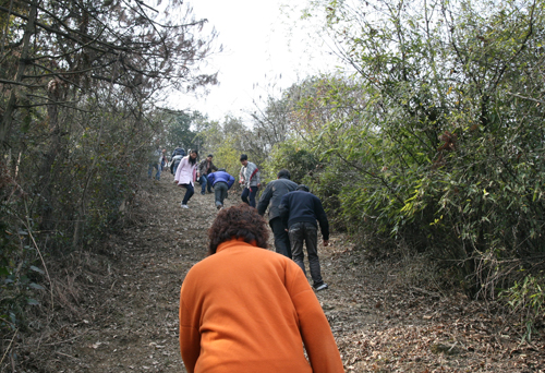 当天中午,教工们三五成群地来到校园登山入口处,沐浴着冬日的阳光,沿着山路蜿蜒而上,每个攀登者都满怀愉快的心情,一路叙说,一路欢笑。