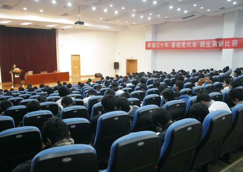 三十年沧桑巨变,三十年辉煌历程。12月11日晚,“辉煌三十年,喜迎党代会”师生演讲赛在图书馆报告厅举行。由各二级学院学工组及分工会选送的26名选手参加比赛。200多名师生现场为选手加油助威。