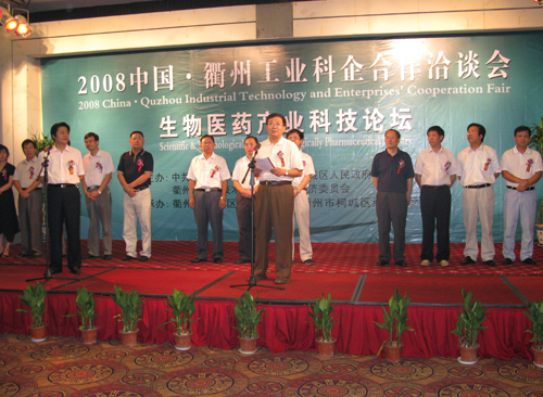 图1为杜卫在,“2008中国•衢州生物医药产业科技论坛”开幕式上致辞