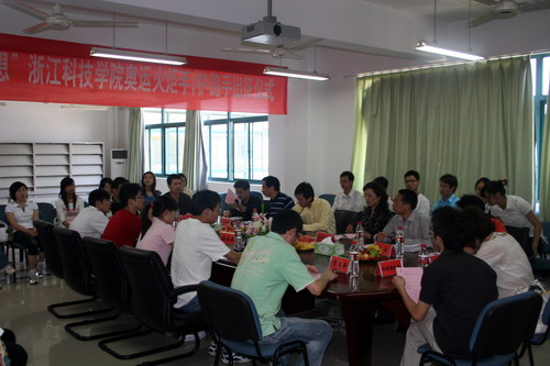 火炬手代表张晶晶、护跑手代表王琦表示,2008北京奥运会火炬接力传递活动举世瞩目,能够担任火炬手、护跑手无尚光荣,他们一定不辱使命,出色地完成任务,展现科院大学生的风采。