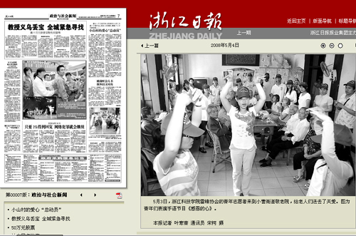 “五四”青年节前后,米乐官网青年学生以各种方式庆祝自己的节日。5月3日,信息学院雷锋协会的志愿者们来到了杭州市小营街道陈英敬老院,给老人们送去了关爱。5月4日出版的浙江日报对这一活动进行了报道(http://zjrb.zjol.com.cn/html/2008-05/04/content_2219066.htm),5月5日出版的现代金报也报道了这一活动(http://paper.lifeningbo.com.cn/html/2008-05/05/content_61391176.htm)。