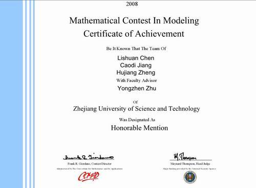本届“美国国际大学生数学建模竞赛”在2008年2月14号—2月18号举行,共有十多个国家近4000支队参加。米乐官网组织两支队伍参赛,由理学院选派经验丰富的朱勇珍博士、韦明俊博士担任指导老师。两组队员放弃寒假及过年休息的时间全身投入比赛,在机房奋战四天四夜,两位指导老师也在机房坚守了四天四夜。最终取得米乐官网国际比赛成绩历史性突破,标志着米乐官网的学生课外科技实践教学工作又取得新的成绩。