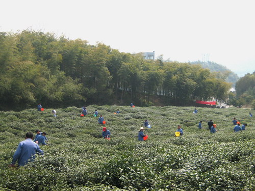 今年初茶园受雪灾影响较大,后勤公司在后期加强对茶园的精心管理、修护,茶叶整体长势良好,新茶肉厚、饱满,质量和产量较去年均有明显提升。3月27日,明前茶开始采摘。4月,春茶产量迅速增长,后勤公司根据春茶出芽情况灵活安排人员轮流采茶,并聘请了10多名学生体验采茶工作。在炒制过程中,严格控制杀青、辉锅、回炉等各道工序,并购进新炒茶机,与手工方式相结合炒制新茶,使茶叶成品造型更加美观。茶叶包装也设计成更具茶文化风味的高档礼盒包装。同时,2006年培植的龙井43#茶也开始采摘,该品种出茶时间早、一叶一芯、产茶率高。预计今年的“和山香茗”春茶产量可达200余斤。天然无污染、色正汤清味醇的“和山香茗”春茶成了抢手货,预订电话不断,目前已销售一空。