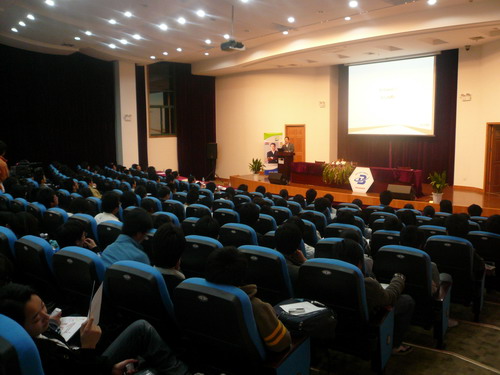 3月29日晚,第20期优秀企业家进校园活动在校图书馆第二学术报告厅举行。中国最大的博客社区51.COM创始人兼首席执行官庞升东先生与同学们分享他的成功创业经验。校党委副书记陈浩出席报告会并讲话。