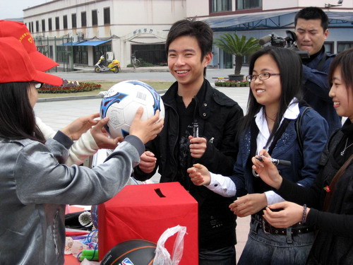 米乐官网信息学院的同学到山区支教时发现,山区学校体育器材、设备短缺,有些学校甚至没有一块像样的操场,但山区孩子渴望体育活动的心和城里的孩子一样,他们渴望能打一场篮球,踢一个真正的足球。信息学院的同学们回校后就想着要为山区的孩子做点什么,和校青年志愿者协会一协商,这场阳光操场爱心募捐活动就开始了。活动现场,许多同学有“球”出“球”,有钱出钱,还有一些老师也慷慨解囊。校党委书记徐志平也来到现场,他亲切地嘱咐志愿者们一定要完整地将这些体育用品和捐款交到山区孩子们手里。