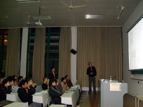 Ruthenberg教授在杭期间为理学院师生作了专题报告,介绍德国高等教育的发展,德国高等教育的层次以及德国应用科学大学(FH)的规模、作用和师生的工作学习情况。Ruthenberg教授一行还与理学院应用物理系教师及07级别应用物理国际班同学进行了座谈。