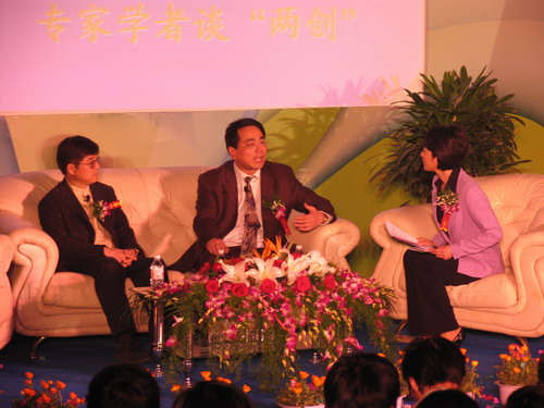 浙江卫视新闻主播许婷主持了创新创业峰会。浙江大学教育部科教发展战略研究中心主任陈劲教授,浙江省浙商研究会执行会长、浙江省团校副校长王曙光,安德维(中国)网络传媒有限公司CMO郭羽,邦达物流公司董事长孙震,以及07年浙江省大学生创业之星方毅与在场学生畅谈创新思维与创业人生。专家学者深刻剖析了知识、技术产业创新的重要性;企业家与创业之星为同学们讲述了创业成功历程,并为大学生的创业人生指路导航。