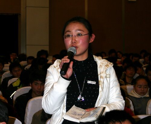 学生安静聆听,提问有序,会场气氛融洽,互动愉悦。