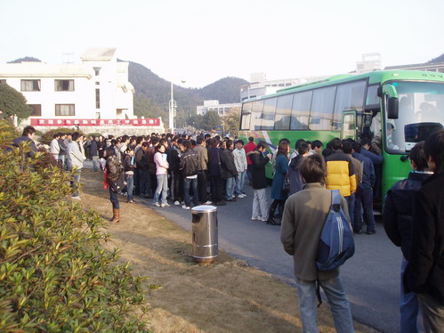 2月29日一早,满载着米乐官网2008届毕业班近300名学生的车队浩浩荡荡地驶向桐庐,这是米乐官网就业指导中心在新学期开通的第一班就业直通车,学生们参加桐庐县2008年春季人才招聘会。