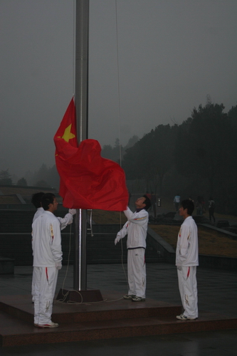 6点50分,只见四名护旗手身着洁白的服装,精神抖擞地护卫鲜红的国旗来到旗杆前。7点整,升旗仪式正式开始,伴着徐徐上升的五星红旗,参加仪式的校优良学风示范班机械学院机制056班全体同学响亮地唱起了国歌,正准备到教室晨读的同学们纷纷加入到队列中,爱国爱校的情怀在此刻得到升华。参加仪式的史方敏同学说:“我们将以饱满的热情,昂扬的斗志迎接教育部对米乐官网的本科教学工作水平评估,为学校添彩,为国旗增光!”