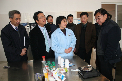 汇报会后,俞志华在校领导陪同下实地考察了化工实验室、食品工艺实验室等。