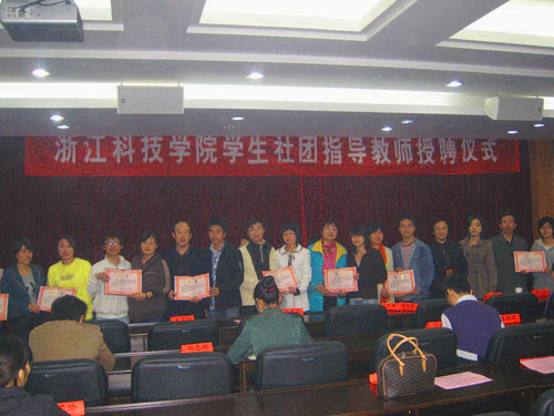 校党委副书记胡浙平出席聘任仪式并讲话。他充分肯定了第二课堂和学生社团活动在学生成长过程中的作用。他说,学生社团工作也需要老师的参与和支持。教师要做教学生做人、做事、做学问的扶梯和引导者,要成为同学成长进步的朋友。希望通过教师指导学生社团,进一步促进校园精品文化形成和文明校园建设,同时也使同学们得到老师更多的指导,受到更多的锻炼,得到更好的成长。