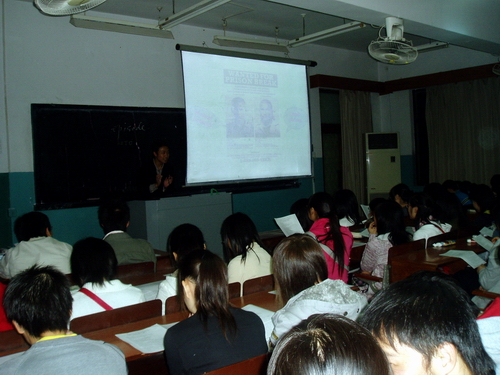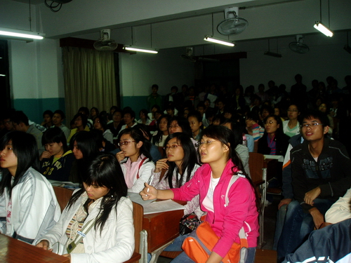 众多学生闻讯而来,活动6点半开始,6点10分教室里已经座无虚席,有同学自带板凳坐在过道,还有同学站着等候。