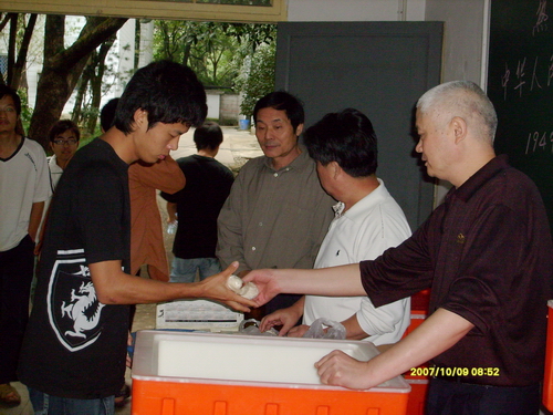 此时,还有13名校卫队员和2名保卫干部正在桥头学生公寓齐腰深的水淹区,紧张进行学生转移工作。他们有的背着,有的抱着往返运送学生。在冰凉刺骨的水里,他们一泡就是2、3个小时。一名身体比较单薄,身高只有1.68米的队员张凯,由于体力严重透支,在最后1名学生到达安全地带后,晕倒了。
