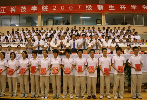 9月16日上午9点,2007级新生开学典礼在西湖体育馆隆重举行。校党政班子成员徐志平、杜卫、胡浙平、陈浩、陈根芳、吕进、鲁凤、黄丰平出席会议并在主席台就座。各二级学院和相关职能部门负责人及2007级全体同学参加了开学典礼。典礼由校党委副书记陈浩主持。