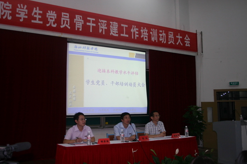 会上,陈浩作了动员讲话。他对“评建”工作的内容、必要性和意义等方面作了深刻阐述,要求全体学生党员、学生干部在学风建设和文明养成中要“率先垂范、攻克顽症”,要全身心地融入学校“评建”工作,发挥党员骨干的先锋模范作用,为“评建”作出应有贡献。