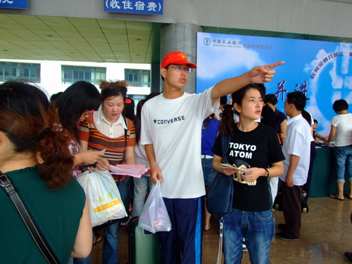 尤其是新生报到“一站式”服务和“绿色通道”,更是为新生快速便捷地完成入学手续提供了保障。报到现场校青协组织的“小红帽”始终走在迎接新生的最前沿,志愿者们忙碌的身影形成了独特的风景线。