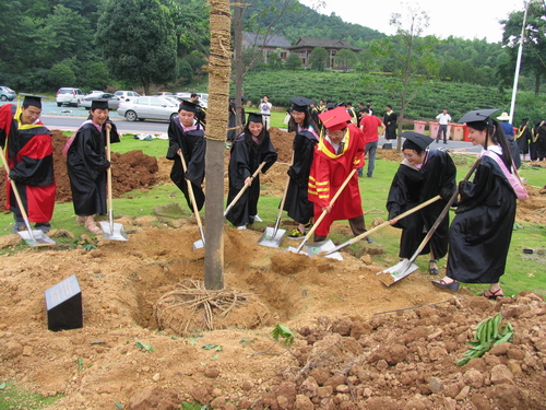 校长杜卫出席活动,并和毕业生们一起锹土、浇水,种下对母校的深深眷恋祝福。杜卫希望同学们毕业后能经常回到母校来,看看亲手栽的纪念树。希望同学们无论取得了多么辉煌的成绩,无论走到天涯海角,都不要忘记母校。各二级学院负责人也参加了活动。
