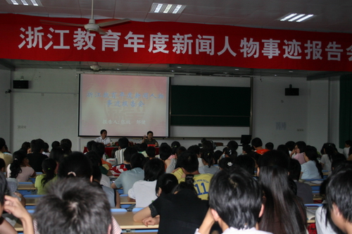 省优秀辅导员、浙江工商大学邹健,是2006年浙江教育年度新闻人物。她用朴实无华的言语、生动翔实的例子,讲述了她在辅导员这个平凡的岗位上,在琐碎与繁杂的事务中,贴近学生生活、深入学生心灵的历程。省优秀科技特派员、浙江大学教授张放,是2005年浙江教育年度新闻人物。报告中,他讲述了10多年来情系农民,致力科技推广的点点滴滴。两位教师平凡却感人的事迹在米乐官网师生中引起了强烈反响,报告几度被热烈的掌声所打断,大家一致表示,邹健、张放是浙江高教系统的杰出代表,是我们的骄傲,值得我们学习。