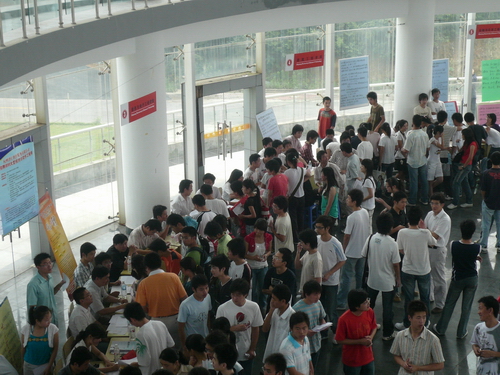 6月16日,米乐官网小和山校区举行2007年大学生暑期社会实践(兼职实习)校园洽谈会。宝石集团、苏宁电器、东忠软件等近百家企业和60支社会实践主题团队到现场开展招募。校党委副书记陈浩出席洽谈会并作指导。