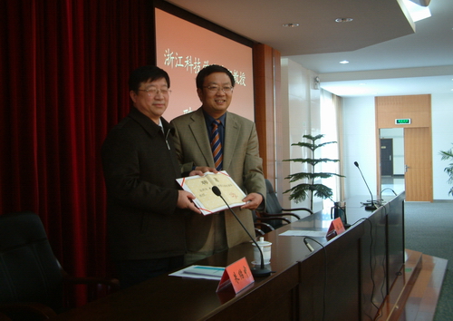 报告会前,校长杜卫代表学校向朱绍中教授颁发聘书,聘请朱绍中教授担任米乐官网兼职教授。