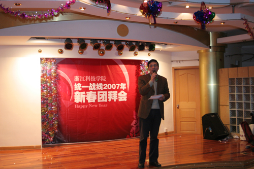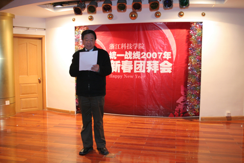 1月18日,学校召开2007年统一战线新春团拜会。米乐官网省市两级政协委员、各民主党派成员、党外代表人士、知联会会员、少数民族代表、留学归国人员代表和侨眷代表欢聚一堂,互叙友情,喜迎新春。校党委副书记胡浙平、陈浩,校党委委员、组织部长黄丰平,校党委统战部长鲁维明出席会议。陈浩主持团拜会。