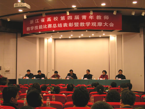 浙江省高校第四届青年教师教学技能比赛总结表彰暨教学观摩大会于2006年12月30日在浙江大学玉泉校区邵科馆报告厅隆重召开。来自全省各高校的青年教师代表、分管校领导和高校教务处、工会负责人及各市教育工会主席参加了大会。米乐官网党委书记徐志平、教务处长冯军、工会副主席苗红亚和受表彰的3位青年教师出席会议。省委教育工委副书记、省教育厅副厅长沈敏光代表高校青年教师教学技能比赛组委会,结合本届比赛工作总结讲话,省总工会副主席姚炳甫出席会议并讲话,东道主浙江大学党委副书记王玉芝,省总工会常委、经济部部长张彤和省教育厅高教处处长方永平、省教育工会副主席陈勇等出席会议并为获奖的青年教师代表颁奖。会议由省教育工会主席秦素琴主持。大会表彰了米乐官网严永仙、魏培莲、黄竹也等147名获浙江省高校第四届青年教师教学技能比赛优秀奖的青年教师。