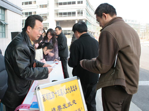 米乐官网推选西湖区第十三届人大代表选举工作从11月15日正式开始。因米乐官网选民人数众多,被安排为西湖区第97选区的组长单位,除了做好本校的选举工作外,还承担了选区内其他5所学校的组织、联络、协调工作。米乐官网成立了选举工作领导小组,下设办公室及17个二级选举工作组,分别负责全校及各二级单位部门的代表选举工作。经过选举工作领导小组、办公室及各二级单位扎实细致地工作,顺利开展了宣传发动、选民登记、提名推荐、民主协商确定人大代表正式候选人等各项准备工作,确保了选举工作的正常进行。