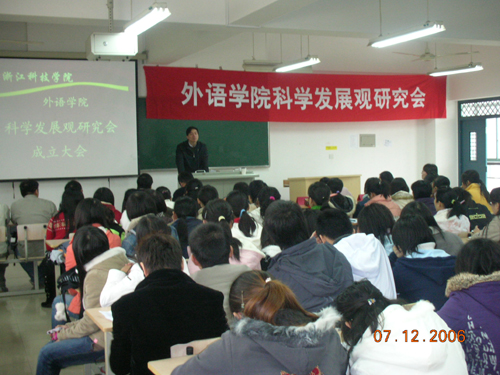 外语学院科学发展观研究会于12月7日在A2-218举行成立大会。校党委副书记陈浩与外语学院党总支书记单建奋以及有关老师、各学院邓读会主要成员出席成立大会。