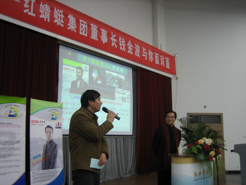12月13日晚,第7期“握手企业家,引领新成长”优秀企业家报告会在A4-122举行,报告厅聚满了闻讯赶来的800多名师生,中国五四青年奖章获得者、中国鞋文化第一人、红蜻蜓集团董事长钱金波与米乐官网师生进行了一场别开生面的精彩交流,校党委副书记陈浩主持了本次报告会。
