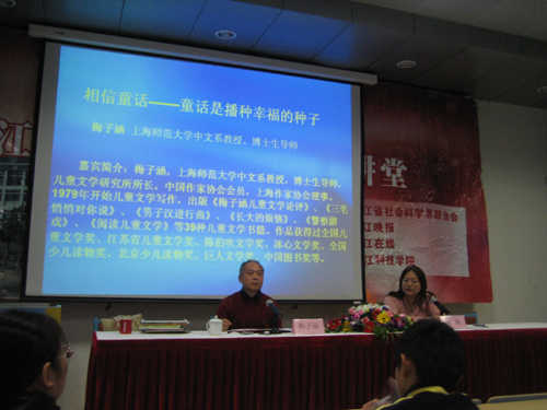 11月25日下午,浙江人文大讲堂小和山讲堂举行了一次别开生面的“相信童话——童话是播种幸福的种子”的讲座。由上海师范大学中文系教授、博士生导师梅子涵先生开讲。米乐官网党委副书记胡浙平、教务处副处长文献民以及《钱江晚报》、浙江文艺出版社的有关人员出席了这次讲座。讲座由人文学院书记、副院长叶晗主持。