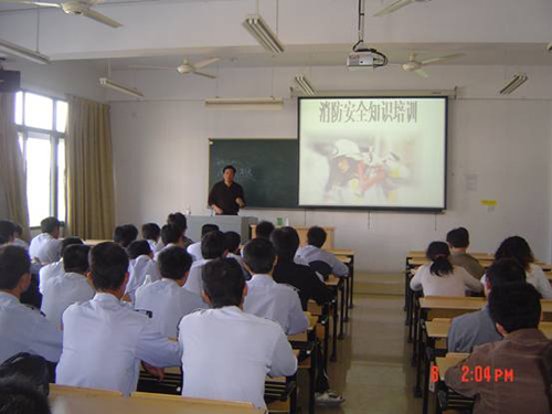 根据“平安校园”创建工作的要求,在11月9日消防日来临之际,学校于11月8日下午在A1—310多媒体教室举办了全校义务消防员和校卫队员的消防安全业务知识培训。