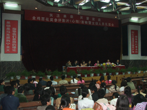 陈浩副书记在首映式上对《心结》主创人员的到来表示热烈的欢迎和衷心感谢,他说,《心结》作为一部主旋律影片,剧本题材创意新颖、轻快诙谐、独树一帜、意义深刻,不仅触动了大学生的心灵,也引起了广大学生关注单亲﹑关爱家庭的思想共鸣;作为本届金鸡百花奖参评影片并受到中国电影家协会重点推荐的作品,能够走入米乐官网,无疑是为广大学生送上了一份文化大餐;在学校大力提倡构建和谐校园的同时,《心结》对和谐家庭的营造以及以人为本的立意无疑为我们提供了一个很好的借鉴。
