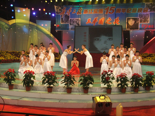 10月10日晚,由团省委、省教育厅主办,省青基会承办的纪念希望工程实施15周年大型文艺晚会在浙江电视台演播厅隆重上演。副省长陈加元、团省委书记赵一德、副书记鲁俊和徐旭、省教育厅副厅长何杏仁等领导出席了此次晚会。由米乐官网大学生艺术团编排并表演的大型舞蹈《感恩的心》以新颖的构思和高质量的表演掀起了晚会的高潮,受到了所有领导、观众的称赞。《感恩的心》系全省高校唯一被录用的节目。