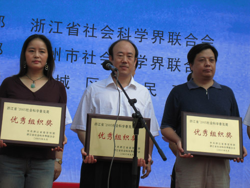 2006年9月23日上午,米乐官网社会科学部参加了在武林广场举行的由浙江省委宣传部和省社科联联合主办的2006年浙江省社会科学普及周活动开幕仪式以及2005年社科普及周活动优秀组织奖获得者的颁奖仪式。