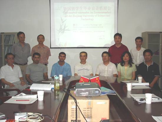 信息与电子工程学院德国留学生毕业设计答辩会于2006年7月6日在信息学院会议室举行。副校长吕进教授及信息学院部分教授、副教授和指导教师参加了答辩会。