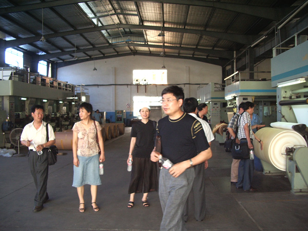 7月13日,根据临安市科技局对本地企业征得的技术需求项目,经科技处联系和组织,轻工学院林江院长带领胡开堂、李土根、沙力争、陈文革、蒋文燕、李炳芳等教授专家们到临安的浙江万利实业有限公司、临安市金州纸业有限公司和临安福马装饰材料有限公司进行了考察。并对企业在生产过程中需要帮助解决的一些具体问题,如用素色纸(80g)水性墨印刷时,如何保证不透底、均匀、无白点;如何使水性油墨在原纸印刷过程中经浸胶、压板后,能产生有特别的光亮度;纸张生产过程中如何保证原纸吸水性的同时,又能提高透气度,高灰份(≥42%)原纸如何提高干强度,如何改善网部成形,提高匀度等使纸张综合性能提高的技术;如何解决铝箔表面硬度和搞氧化;如何解决彩印过程中的色差及装饰纸印刷过程中清晰度;水性油墨开发及装饰纸印刷产生的油墨污水处理等一系列问题进行了探讨。