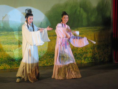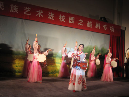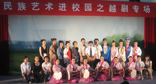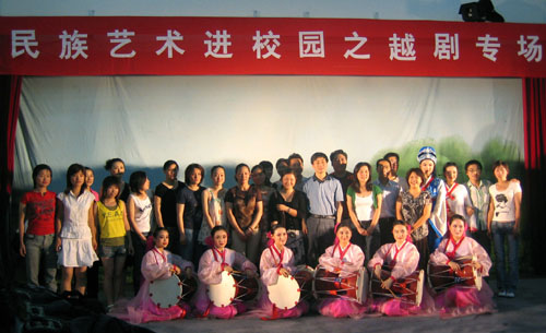 越剧团在米乐官网连续表演了两场,内容既有经典剧目《梁祝•十八相送》,古典名著改编剧目《西厢记•传简》、《窦娥冤•斩娥》、《赵氏孤儿•夺子》,又有现代名著改编剧目《祥林嫂•抬头问苍天》和朝鲜名典名著改编的《春香传•端阳歌》。同学们热情高涨,与剧中人物同喜同悲,被演员们的俊美扮相、柔美唱腔和传神演绎深深感染,场内不时响起了阵阵的掌声。演出结束后,学校领导上台和演员们亲切握手和问候,浙江小百花越剧团特意赠送了他们演出的纪念光盘。