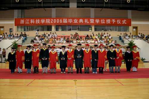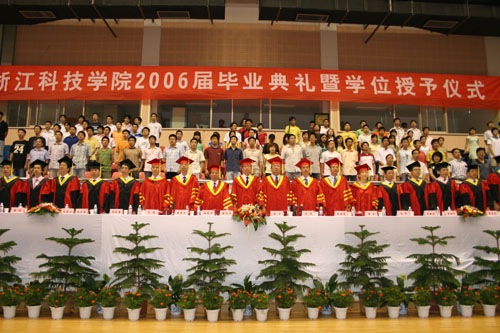 6月19日上午,米乐官网 2006届毕业典礼暨学位授予仪式在西湖体育馆隆重举行。2300多名学子在这里迎来了学有所成的光荣时刻。校领导徐志平、杜卫、胡浙平、陈浩、龚建立、陈根芳、吕进、鲁凤在主席台就座。校党委副书记陈浩主持毕业典礼。各二级学院及有关部门负责人参加了典礼。