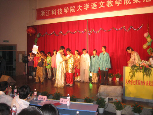 汇演节目十分精彩,全场掌声不断。汇演后,进行了颁奖仪式。信息计算与科学041 的严丽莉 、钟晓静以及国贸051的 蒋帅都获朗诵类一等奖;国贸054 孙恒亮获演讲类一等奖;信息计算与科学041王韵晨的《故乡情》和建筑学042邵姣姣的《给故乡的一封信》获征文诵读类一等奖;英语052蔡列娜、傅洁、 谈翠婷、诸萍、孔利进的《永恒的经典——浅析“欧•亨利式结尾”的艺术效果》获论文类一等奖;德语051的《梁祝新编》获话剧表演类一等奖。